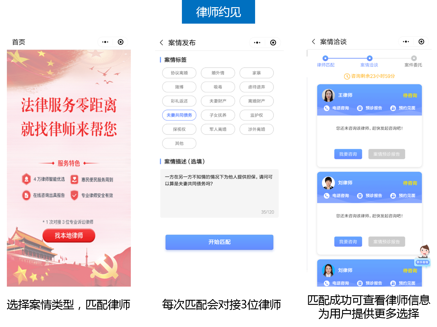 “唐律”在線法律咨詢微信小程序,為用戶提供包括即時(shí)在線圖文咨詢、電話咨詢、視頻咨詢在內(nèi)的多種咨詢服務(wù);用戶還可進(jìn)行本地律師線下約見及委托案件業(yè)務(wù)的辦理。